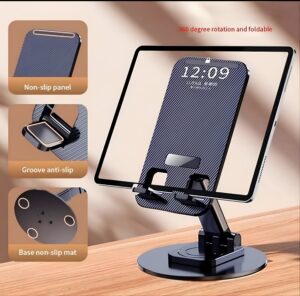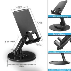 360-degree mobile stand, rotatable phone stand, black metal mobile stand, stainless steel phone holder, adjustable mobile stand, ergonomic phone stand, premium smartphone holder, hands-free phone stand, stylish mobile accessory.